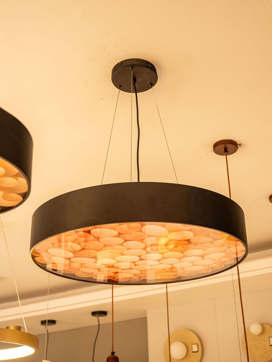 GOLD AND BLACK PENDANT LAMP WITH BLACK SHADE