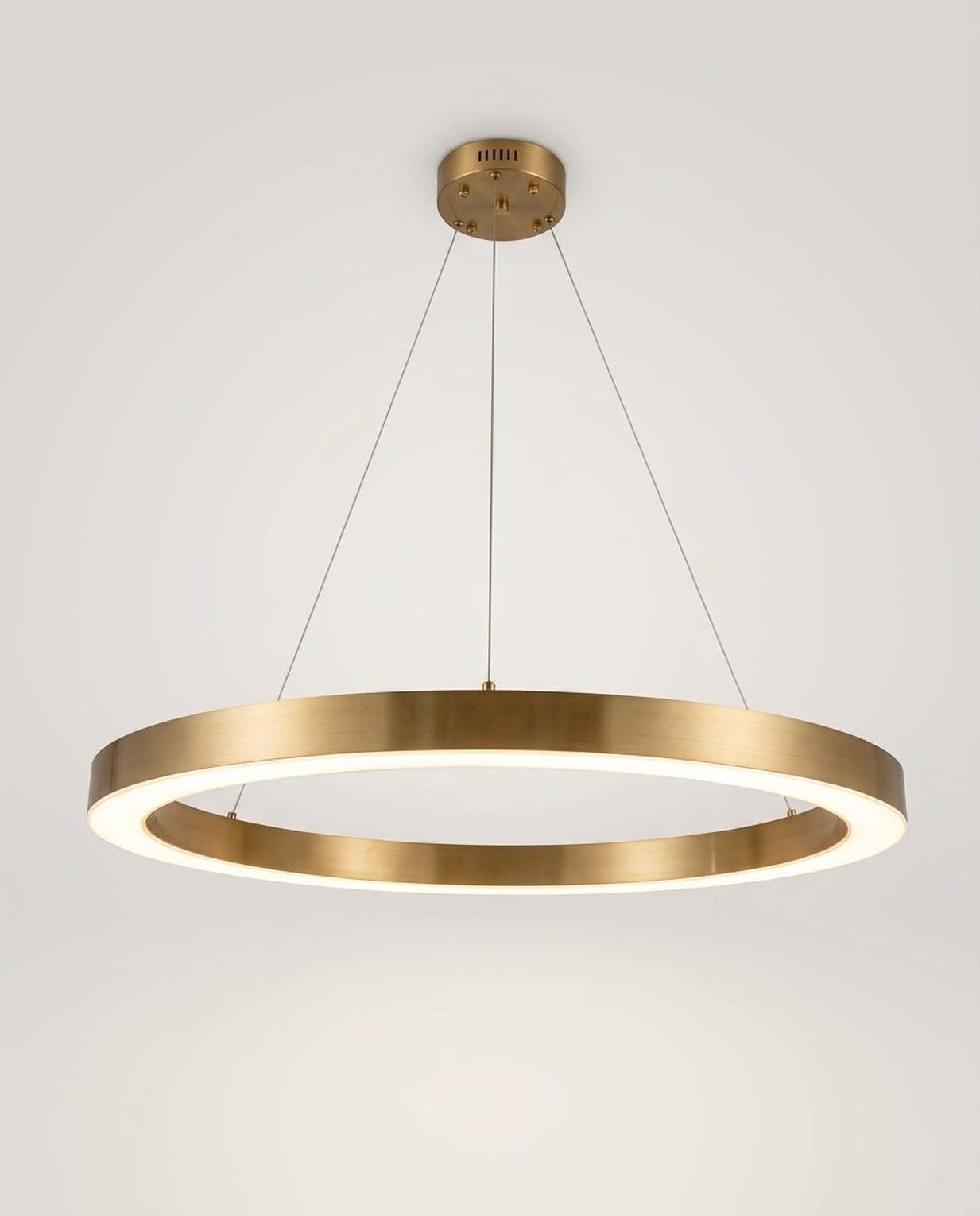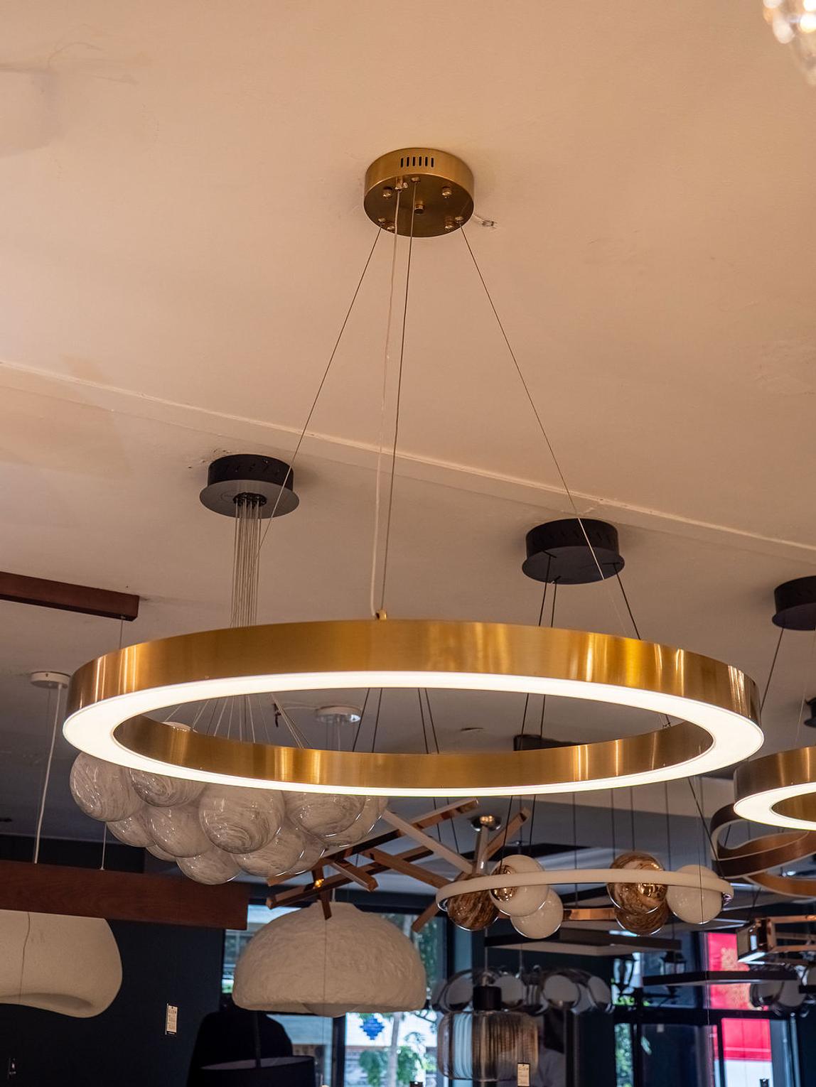 The LED Iron and Stainless Steel Ring Lamp is a masterpiece of geometric simplicity and high-end metallic artistry. Featuring a generous 600mm diameter, this fixture is constructed from a robust combination of iron and stainless steel, ensuring structural integrity and a premium weight. The exterior is treated with a sophisticated brushed gold finish, offering a muted, high-luster texture that adds a touch of warmth and opulence to any ceiling. Equipped with a powerful 40W integrated LED system, the ring emits a seamless, 360-degree ribbon of light that is both energy-efficient and visually striking. The adjustable suspension cables allow for versatile mounting heights, making it suitable for both standard and high ceilings. Its tarnish-resistant surface ensures the golden glow remains vibrant over time, while the minimalist profile makes it an ideal centerpiece for those who appreciate clean lines and architectural elegance. Whether suspended over a circular dining table or used to crown a modern lounge, this ring lamp offers a perfect blend of structural strength and radiant, contemporary flair.