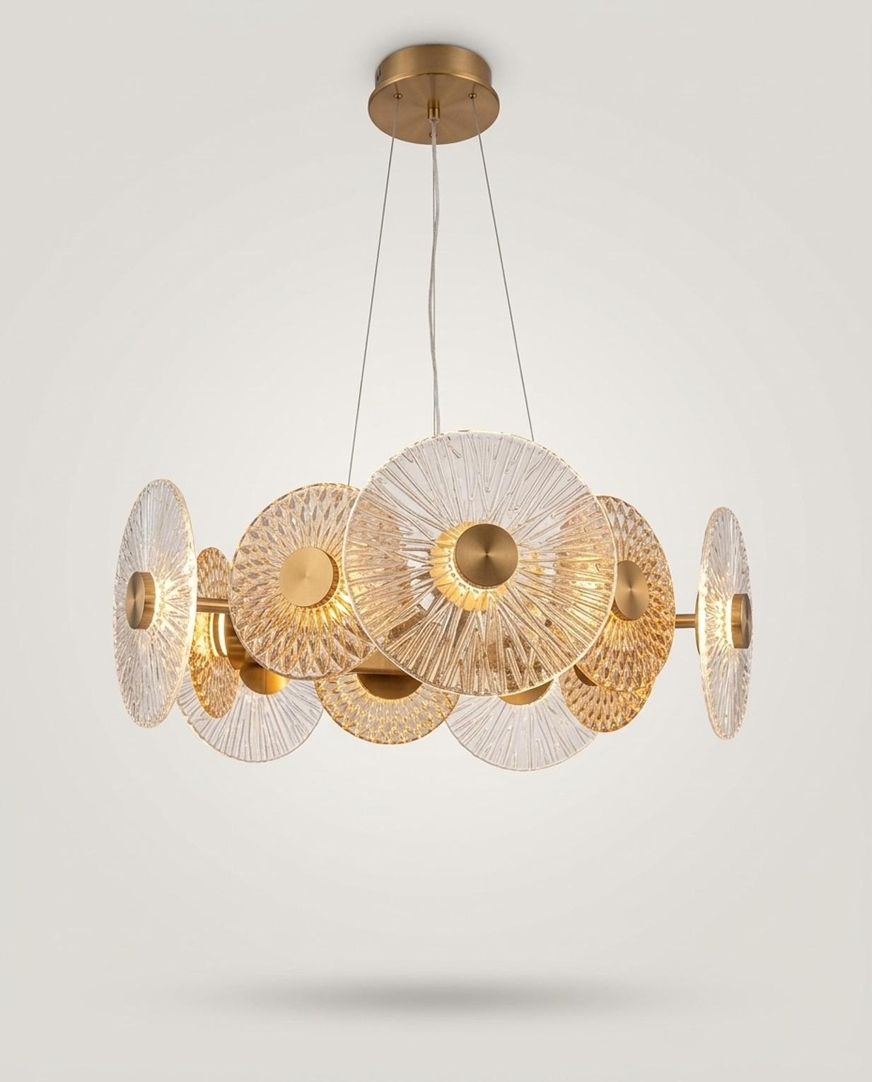 CIRCULAR K21 CRYSTAL CHANDELIER WITH SHINY GOLD BASE WITH LED GU10 LIGHTS BASE