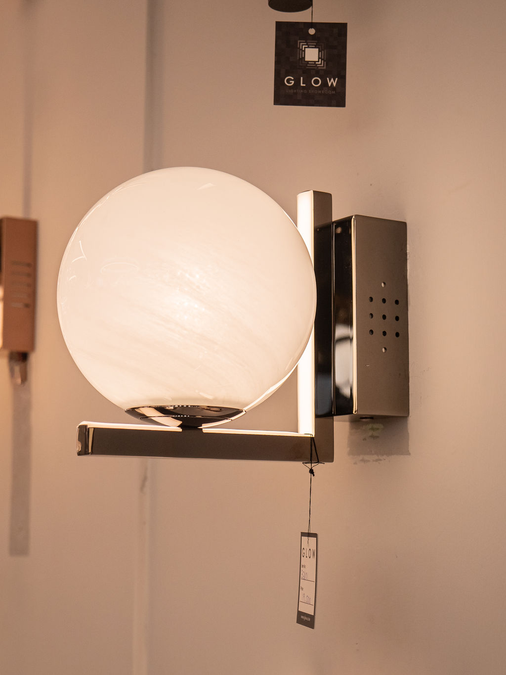 STAINLESS STEEL WALL LAMP IN MIRROR BLACK FINISH WITH MILKY GLASS