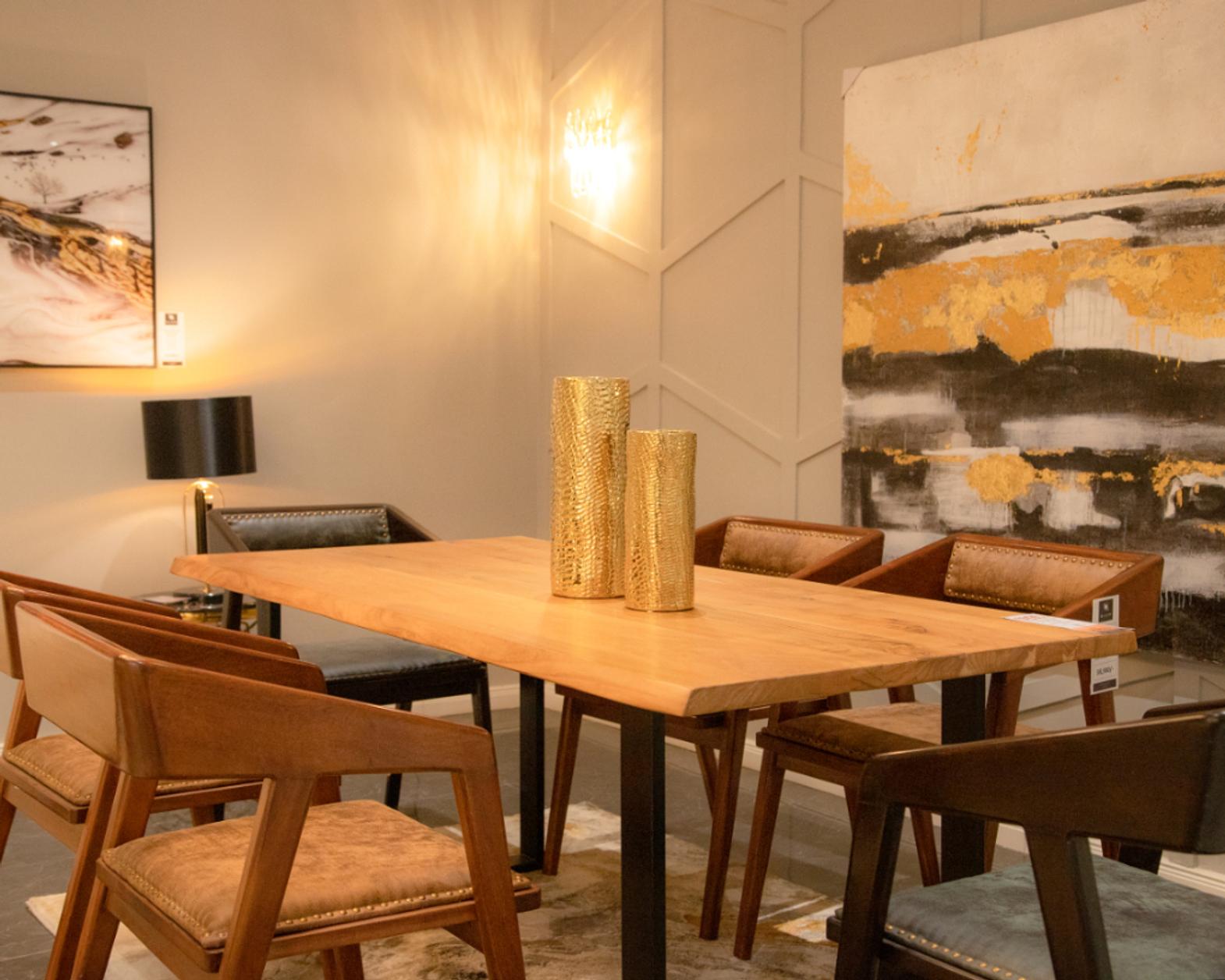 LIVE EDGE DINING TABLE WITH ACAIA TOP AND METAL BASE