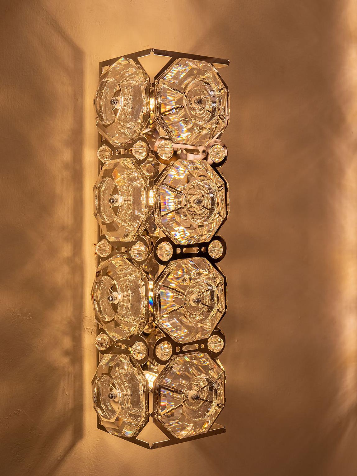 The 395130130 Stainless Steel K9 Crystal Brick Wall Lamp is a contemporary masterpiece that brings architectural depth to interior lighting. This fixture features a unique "crystal brick" finish, where precision-cut K9 crystal prisms are stacked to create a dense, refractive surface that brilliantly scatters light across your walls. The frame is crafted from premium-grade stainless steel with a mirror-polished finish, ensuring a sleek, tarnish-resistant look that complements modern and transitional decors alike. Measuring 395mm in height with a subtle 130mm projection, this wall lamp provides an opulent layer of secondary illumination without overwhelming the space. Its geometric design is specifically engineered to reduce direct glare while maximizing shimmering output, making it an ideal choice for upscale residential suites, grand hallways, or as a sophisticated decorative anchor in boutique commercial environments.