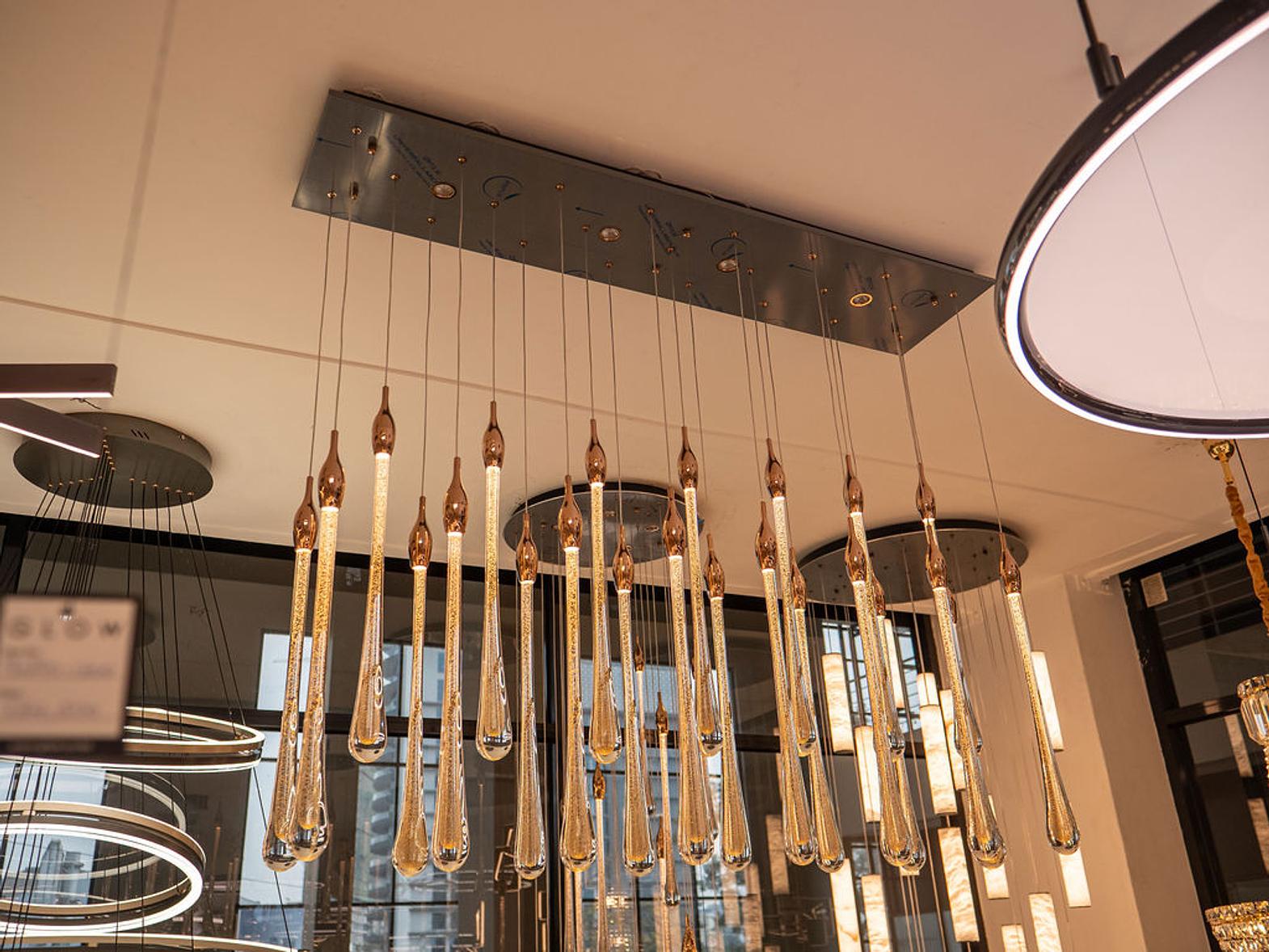 Rosegold in aluminum finish dining lamp finished in crystal led dropletsl:1300*w290*h2000
