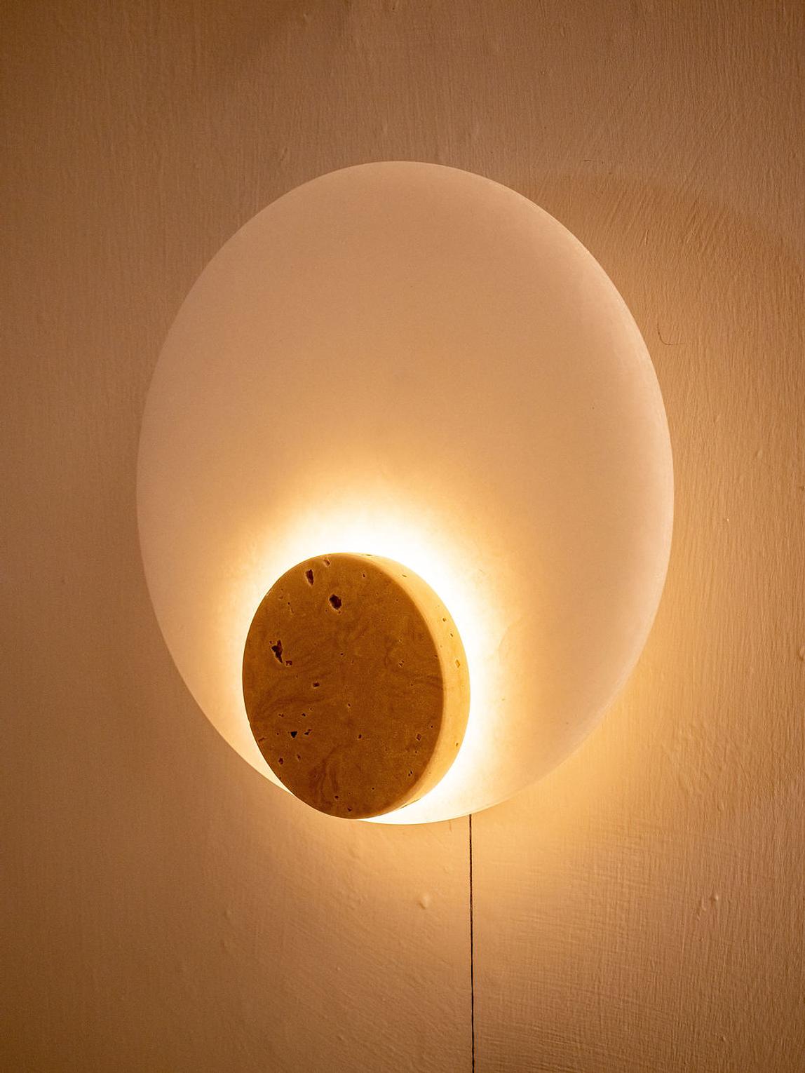 A refined wall lamp crafted from travertine marble, ideal for hallways, bedrooms, and feature walls